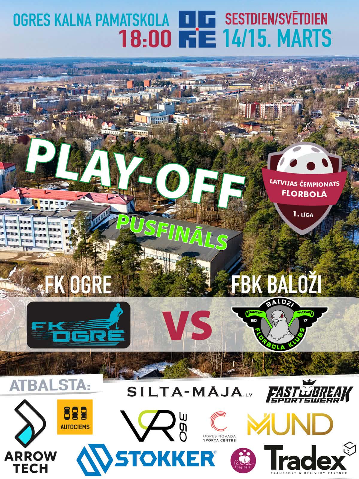 Latvijas Čempionāts Florbolā 1.līgā vīriešiem sāk tuvoties savai kulminācijai un jau šo sestdien un svētdien 18:00 Ogres Kalna pamatskolā tiks aizvadītas pirmās cīņas starp FK Ogre un FBK Baloži, sērija notiek līdz kādas komandas trīs uzvarām!